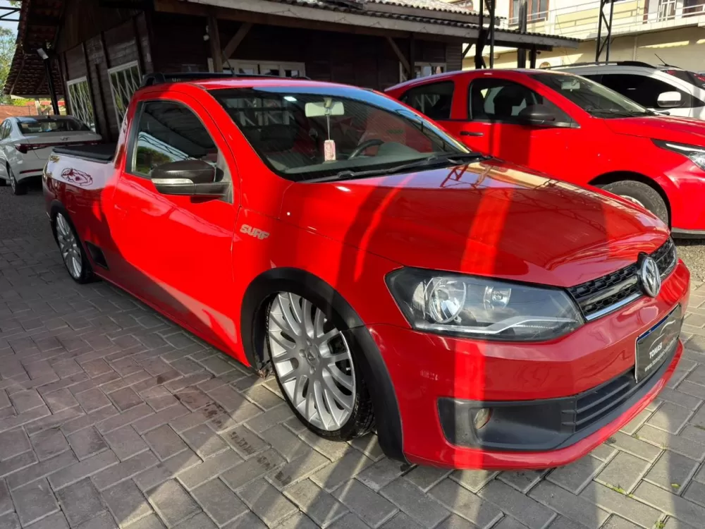 Saveiro Surf 2015 1.6 completa com air bag duplo, freios abs, ar condicionado, bancos em couro, kit multimídia, controle de som no volante, direção hidráulica, vidros elétricos, travas elétricas, alarme, chave canivete, faróis de neblina, pisca nos retrovisores, rodas de liga leve 18 polegadas com 4 pneus zero! Veículo com suspensão a ar em ótimo estado de conservação!
